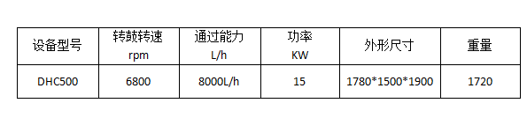 DHC500型設(shè)備主要參數(shù):