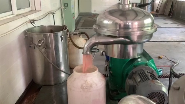 4. 碟式離心機(jī)使用前做好潔凈度的驗(yàn)證。離心機(jī)操作界面顯示電流值穩(wěn)定,則預(yù)熱完畢,而后實(shí)施進(jìn)料,調(diào)節(jié)流量在1000L/min,運(yùn)行2分鐘后,取樣檢查潔凈程度;