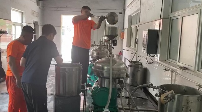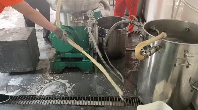 不難看出該物料經(jīng)離心機分離后明顯的澄清度。像這種全自動離心機(碟片分離機)的使用,相信大多數(shù)生物企業(yè)早已不陌生,而這種離心機設(shè)備之所以能夠被廣泛應(yīng)用,說明它在生產(chǎn)過程中的確起到了關(guān)鍵作用,如果說植物提取有段位,那這種離心機的使用,就是提升其段位的關(guān)鍵“法寶”之一,其利用不同物質(zhì)在離心力場中不同的離心速度,將混合物中不同成分分離,以實現(xiàn)物質(zhì)的提取、分離和濃縮等目的,省人力物力的能力也自然不在話下。