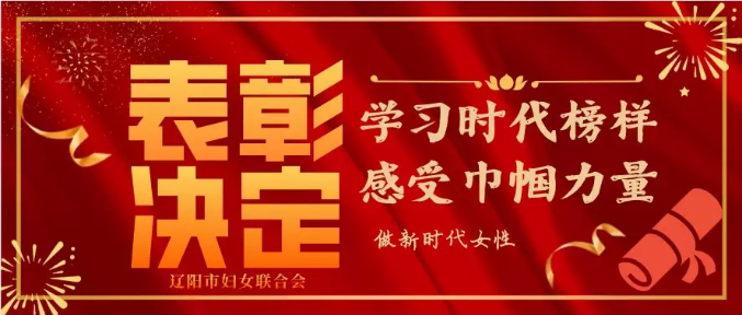 為傳承榜樣力量,在十四五的新起點(diǎn)上,引領(lǐng)動(dòng)員全市廣大婦女群眾巾幗心向黨、建功新時(shí)代,爭(zhēng)做走在時(shí)代前列的奮斗者、開拓者、奉獻(xiàn)者、以崗位建功獻(xiàn)禮建黨一百周年,遼陽市婦聯(lián)決定,授予遼寧富一機(jī)械有限公司總經(jīng)理孫春玲等人“遼陽市三八紅旗手”榮譽(yù)稱號(hào)。并希望全市廣大婦女以先進(jìn)典型為榜樣,見賢思齊,見德思齊,立足本職凝心聚力,砥礪前行,爭(zhēng)創(chuàng)-一-流,為建設(shè)更高水平的“四個(gè)遼陽”為實(shí)現(xiàn)新時(shí)代遼陽全-面振興、全-方位-振興抒寫巾幗榮光!