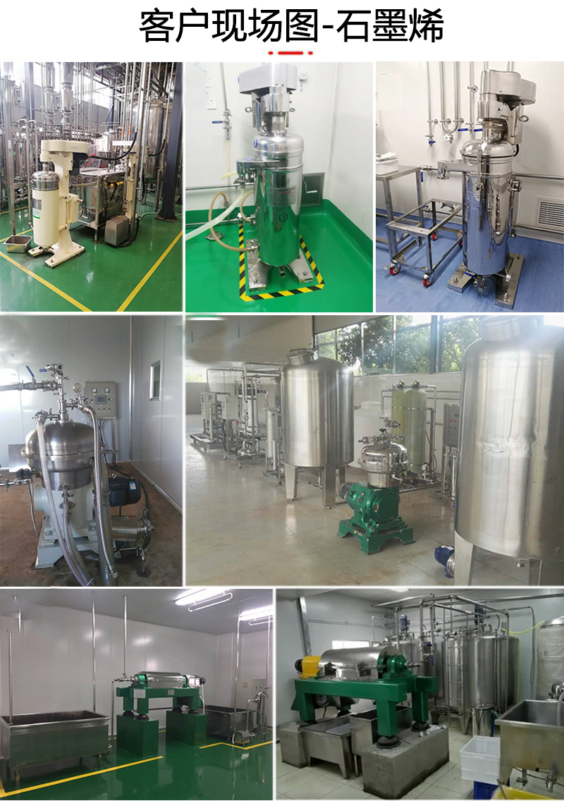 碟式離心機(jī):是一種全自動高轉(zhuǎn)速離心機(jī),適用于大規(guī)模氧化石墨烯分散液的澄清(分離石墨殘渣)、石墨烯漿料的濃縮(將固含量從0.5%-2%提升至5%-10%)。