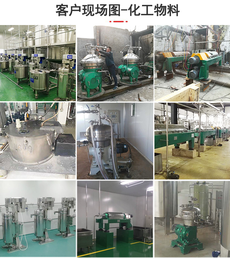 應(yīng)用設(shè)備:根據(jù)化工行業(yè)生產(chǎn)工藝的不同,物料的不同參數(shù),可適用的離心機(jī)有管式離心機(jī)、碟式離心機(jī)、臥螺離心機(jī),平板離心機(jī),其選擇依據(jù)主要有處理量、含固量、分離效果等因素。
